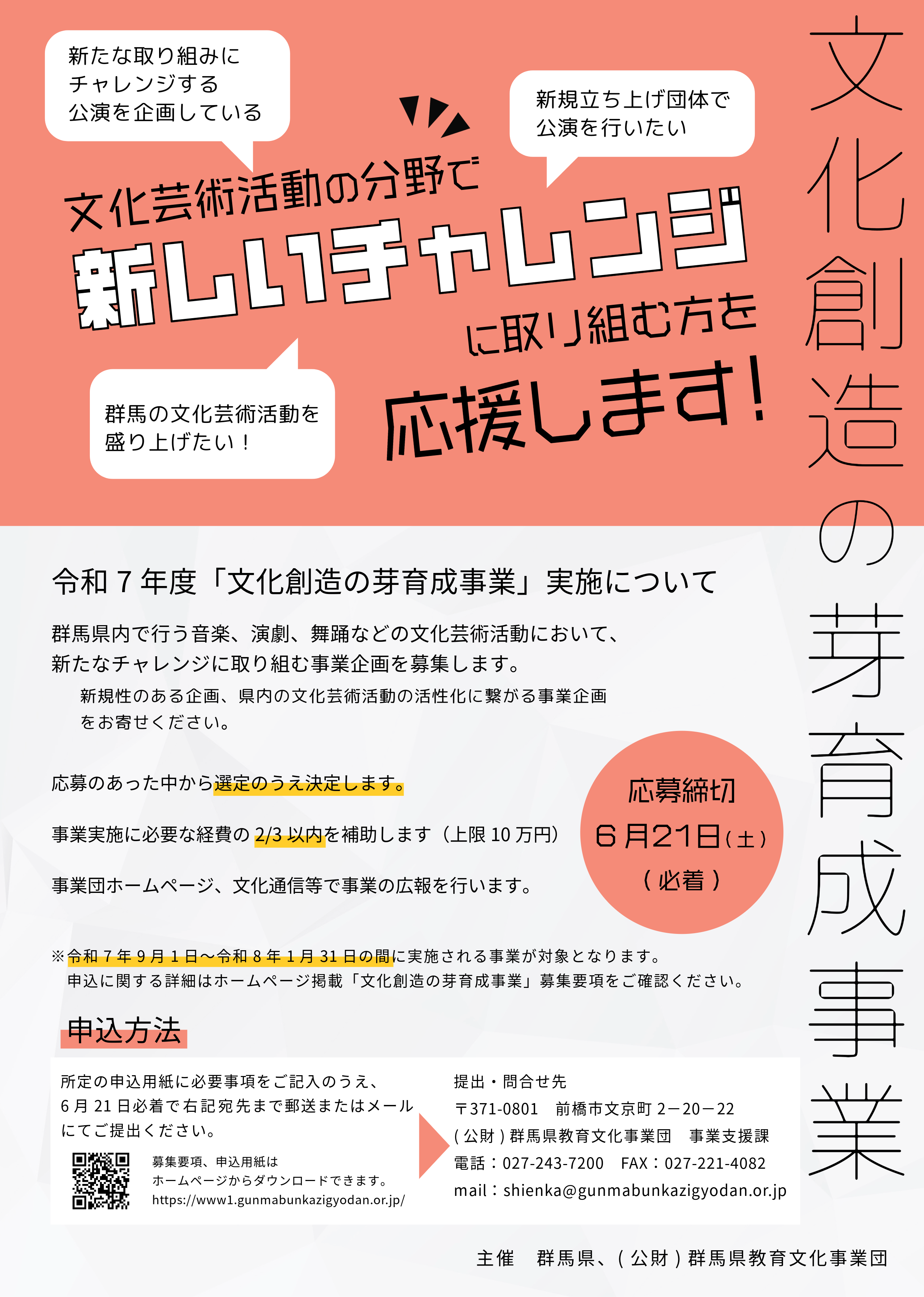 「群馬のふるさと伝統文化 支援事業補助金」「文化創造の芽育成事業」について